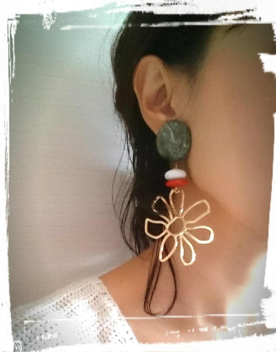 インパクトのある、お花のゴールドパーツも甘くなりすぎず、大人素敵なデザインに✨