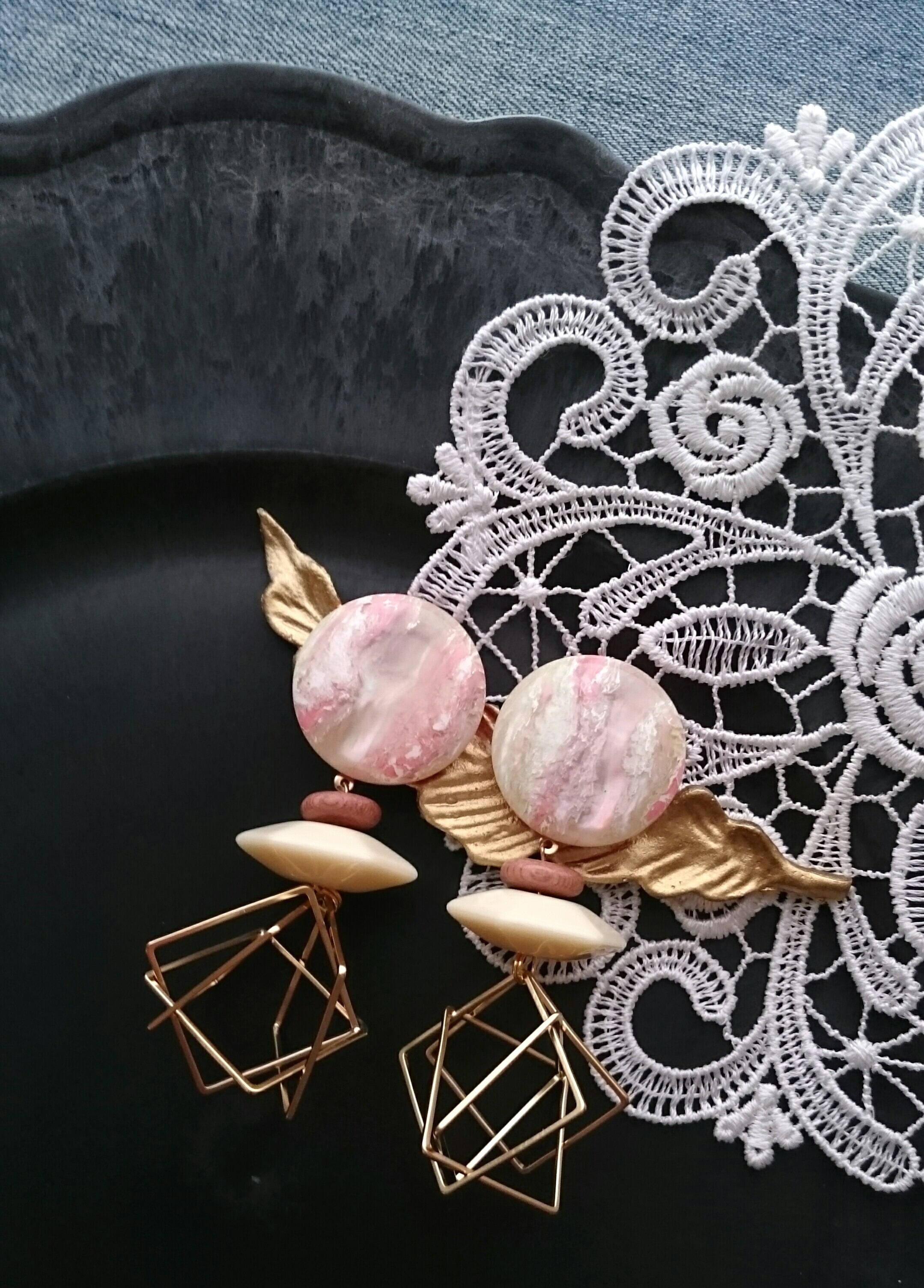 pink(stone) × wood × ivory × wire(big gold) 《再販なし》