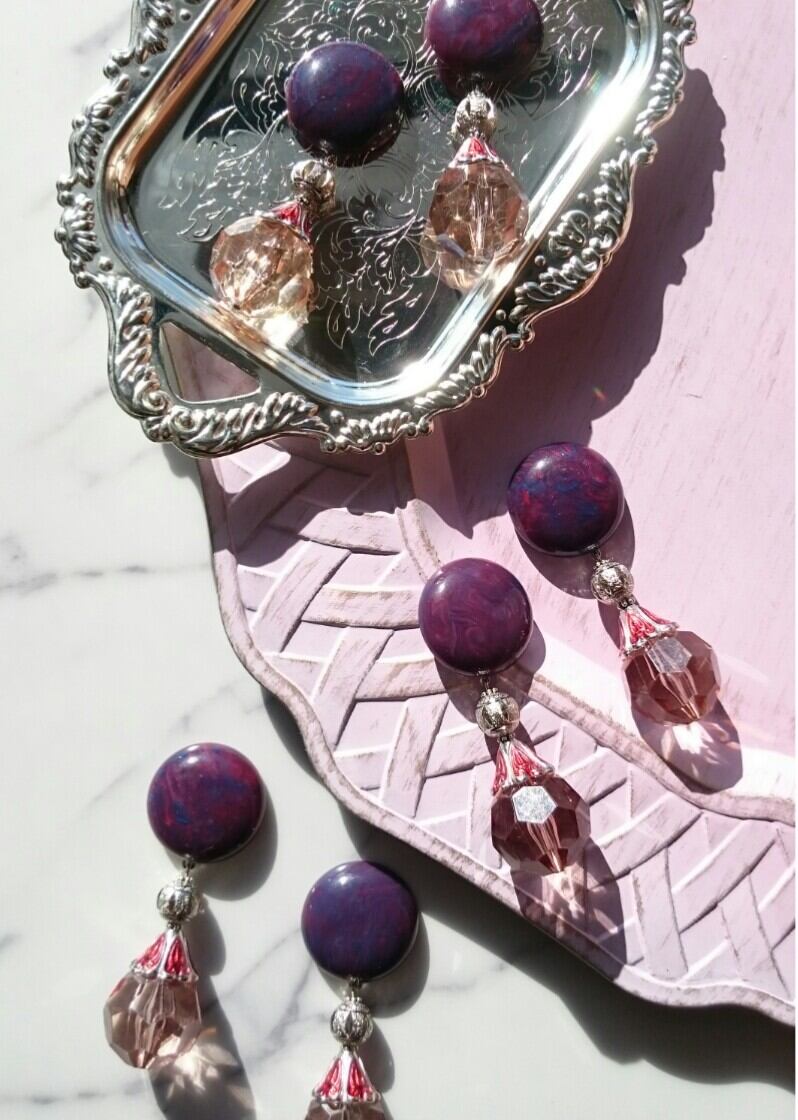 purple(marble) × silver × red silver beads cap × big clear brown 《再販なし》