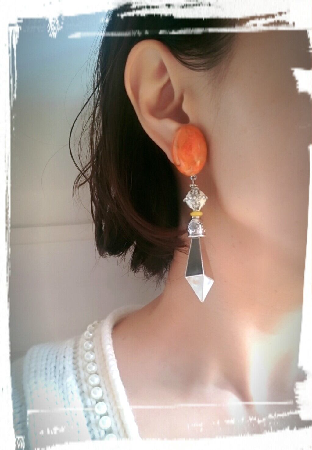 高級感あるストーン調が素敵なオレンジパーツ✨