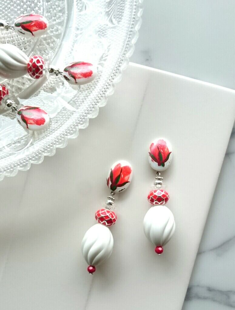 ホイップクリームのような白いヴィンテージビーズもとっても素敵です✨