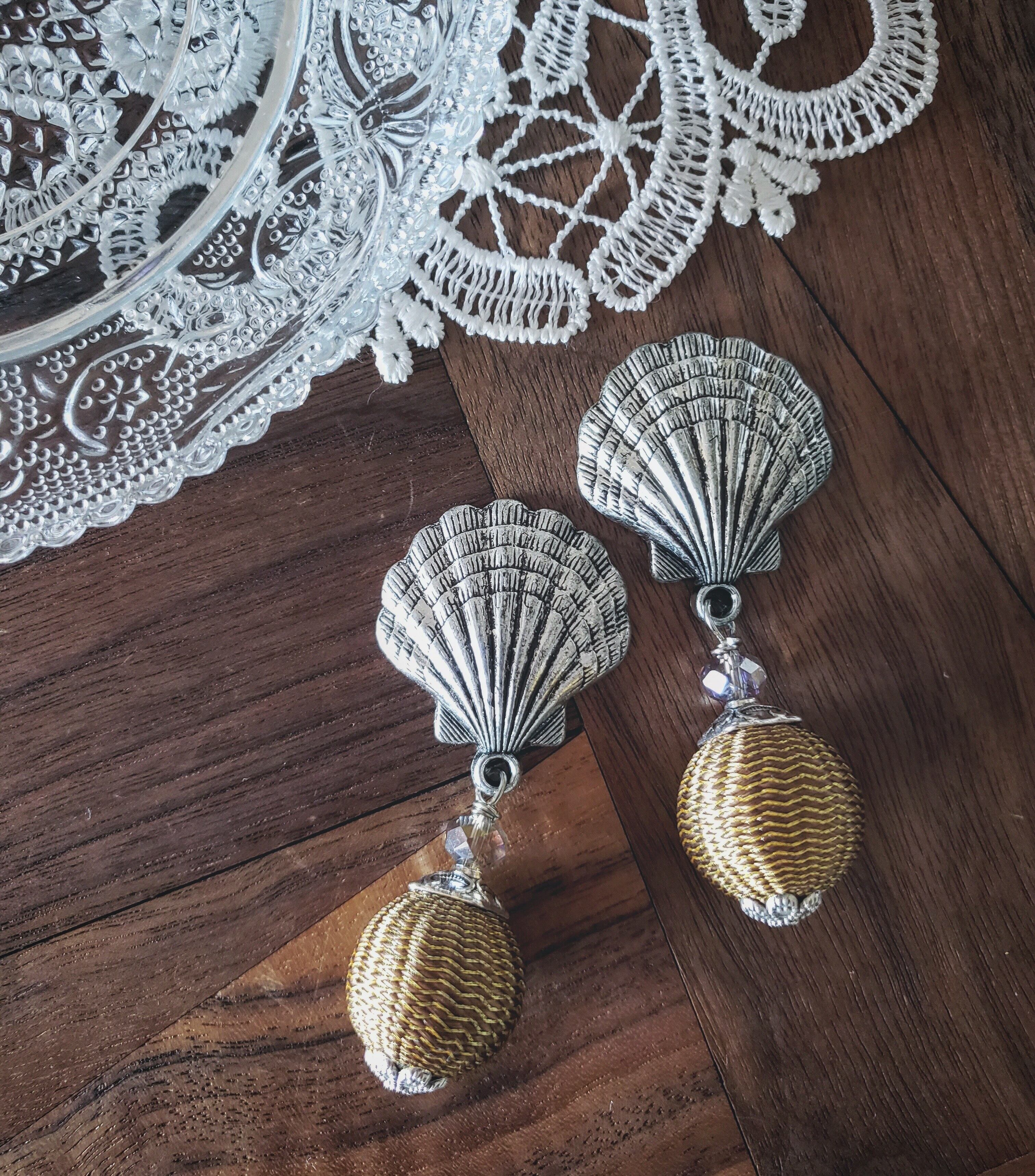 アンティークな雰囲気漂うシェルモチーフが魅力的なシルバーカラーのヴィンテージパーツ✨
