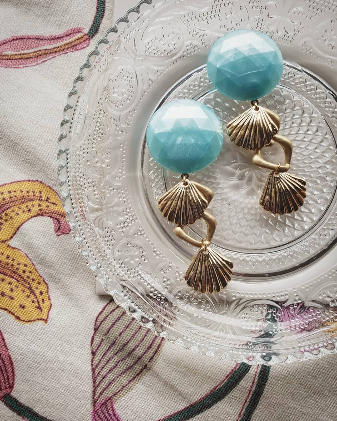 pearly light blue × gold shell × matte gold chain 《再販なし》