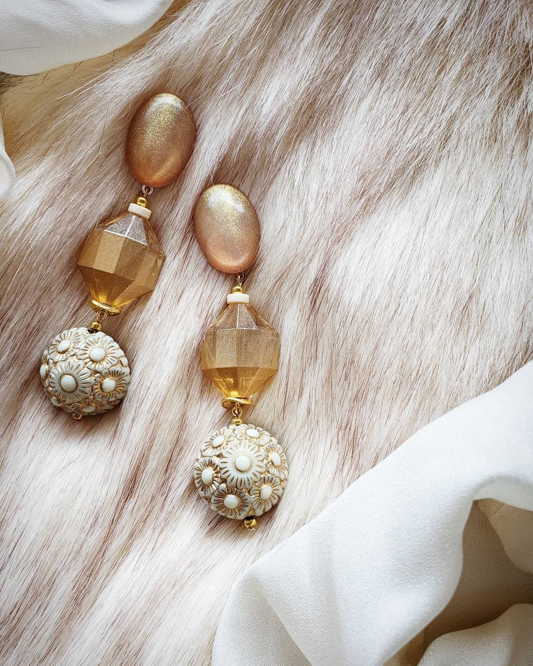 clear light brown(gold glitter) × clear gold × big beige beads 《再販なし》