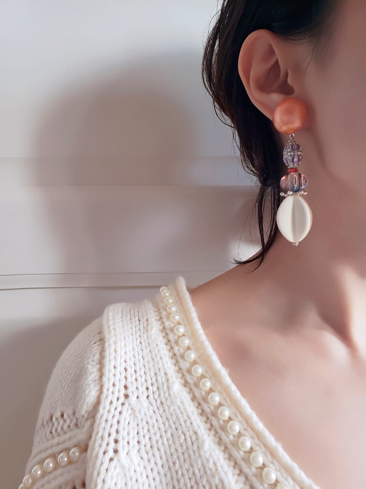 pearly orange × bijou beads(purple) × clear × big ivory beads 《再販なし》