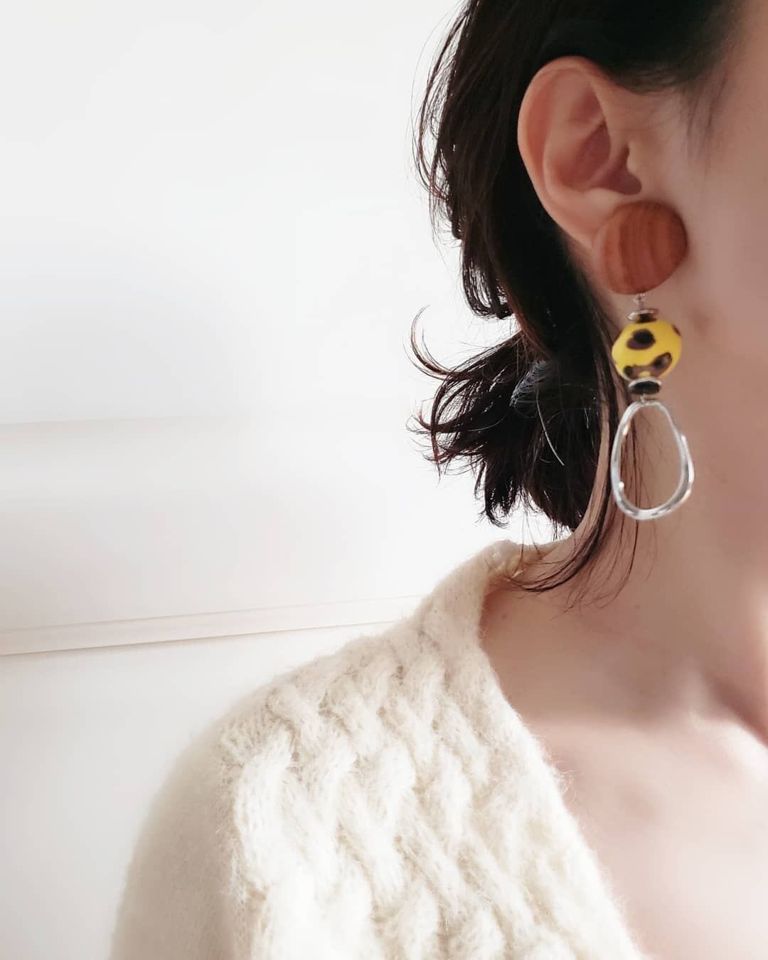 素敵なnaturalwoodパーツと、パンチのあるペイントがされたwoodビーズに、異なる素材のシルバーリングを合わせた、個性あるカジュアルデザイン✨