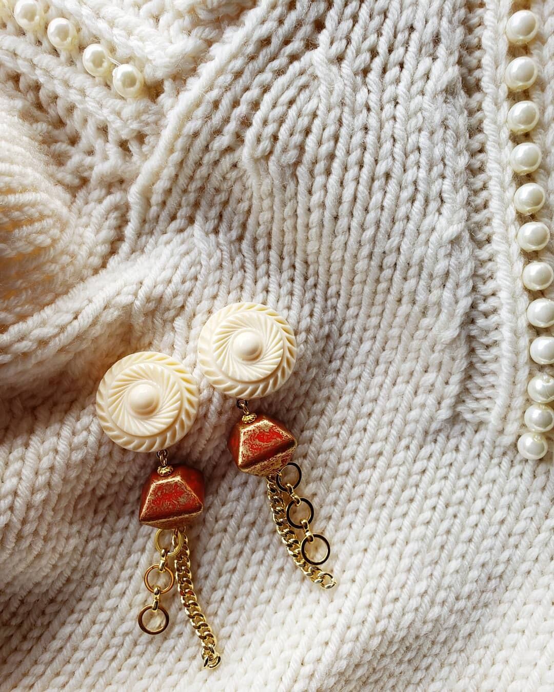 優しいアイボリーとアンティーク感ある赤が素敵なヴィンテージパーツ達✨
