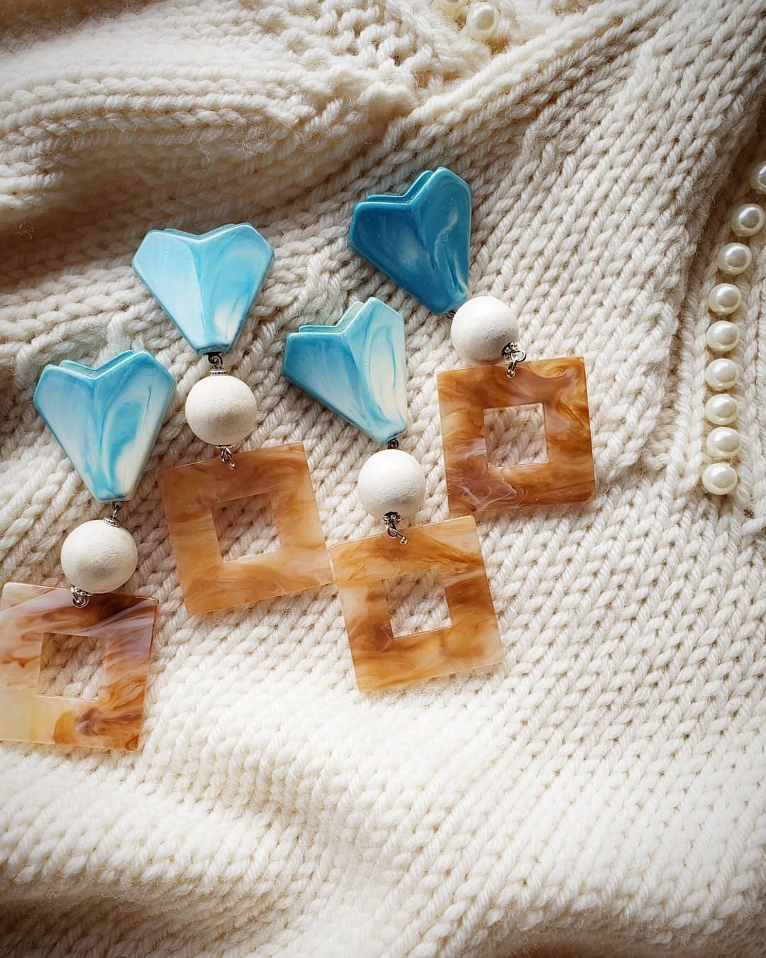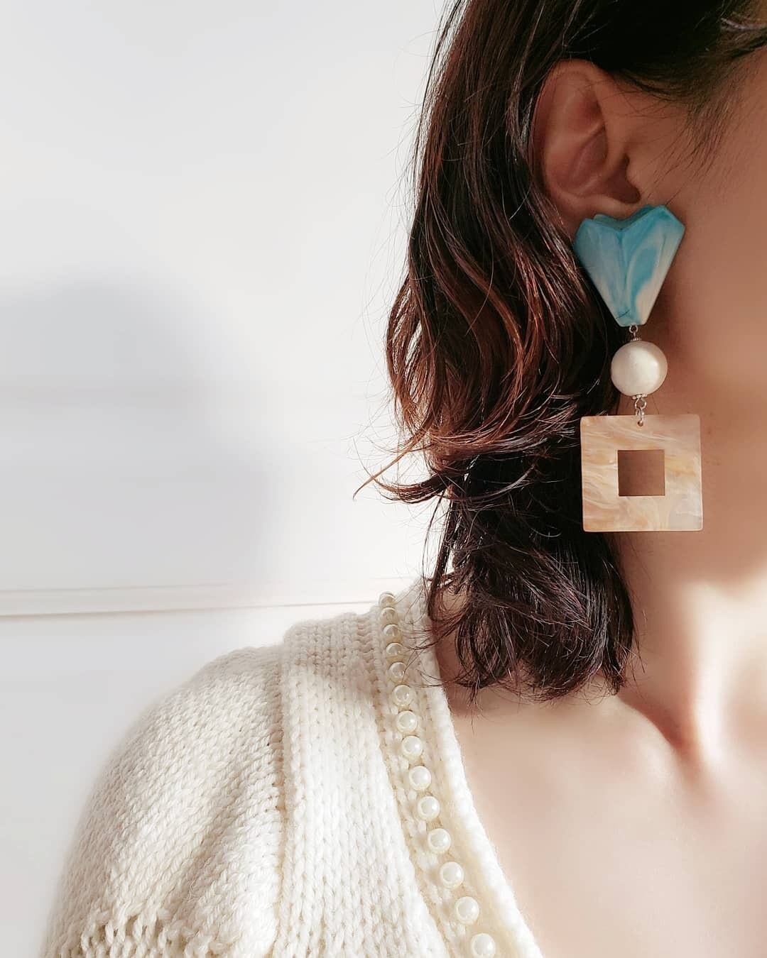 相性抜群の優しいライトブラウンマーブルのスクエアパーツを合わせた、レトロ感あるカジュアルデザイン✨
