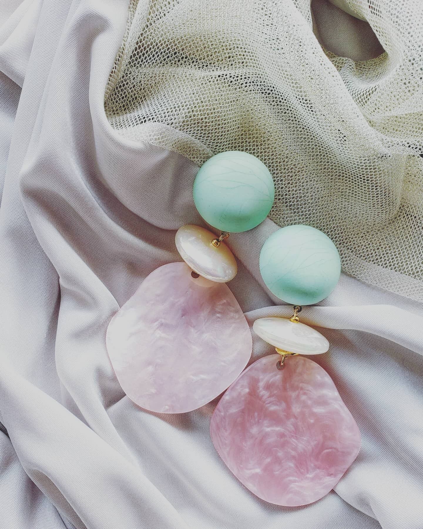 パーリーな質感のアイボリーとピンクの艶やかパーツ✨