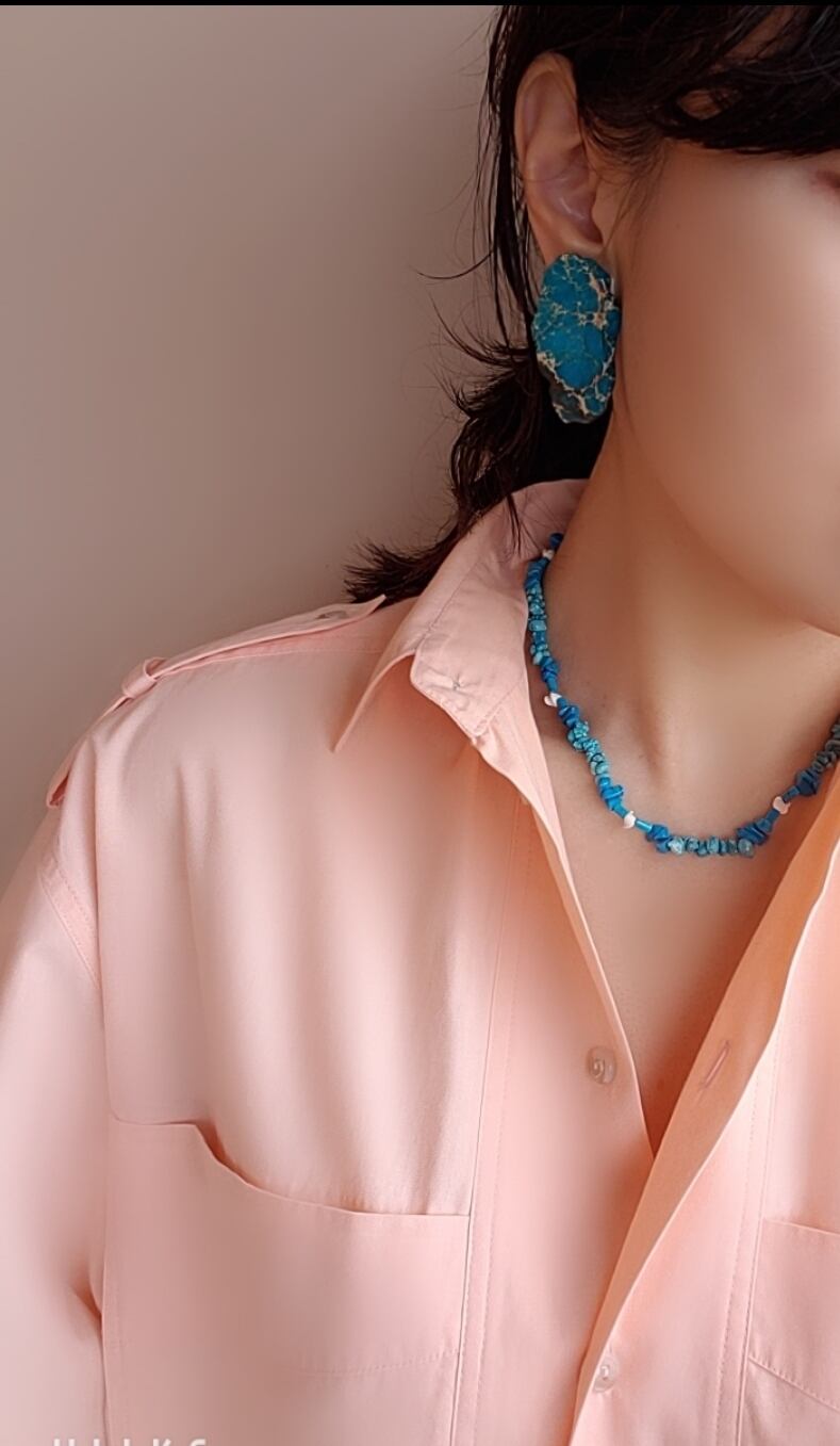 目が醒めるようなターコイズブルーが魅力的すぎる、イヤリング(ピアス)とチョーカーネックレスの、