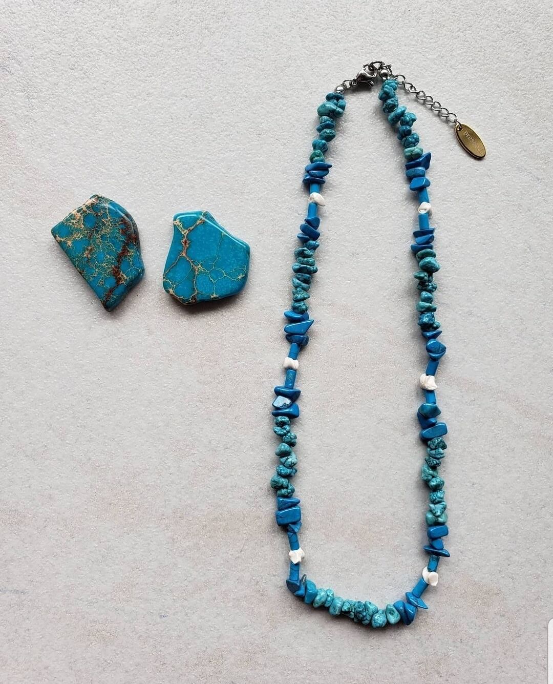 目が醒めるようなターコイズブルーが魅力的すぎる、イヤリング(ピアス)とチョーカーネックレスの、