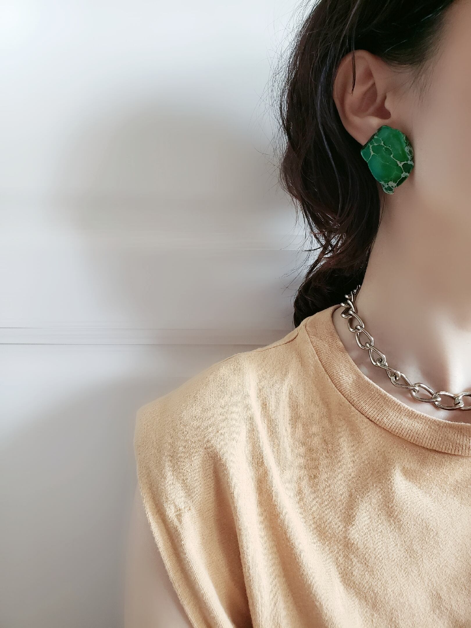 大きいサイズのモノは若干厚みと重みがありますので、ピアスの穴が下の方、耳が弱い方など、イヤリングでの着用をオススメ致します✨)
