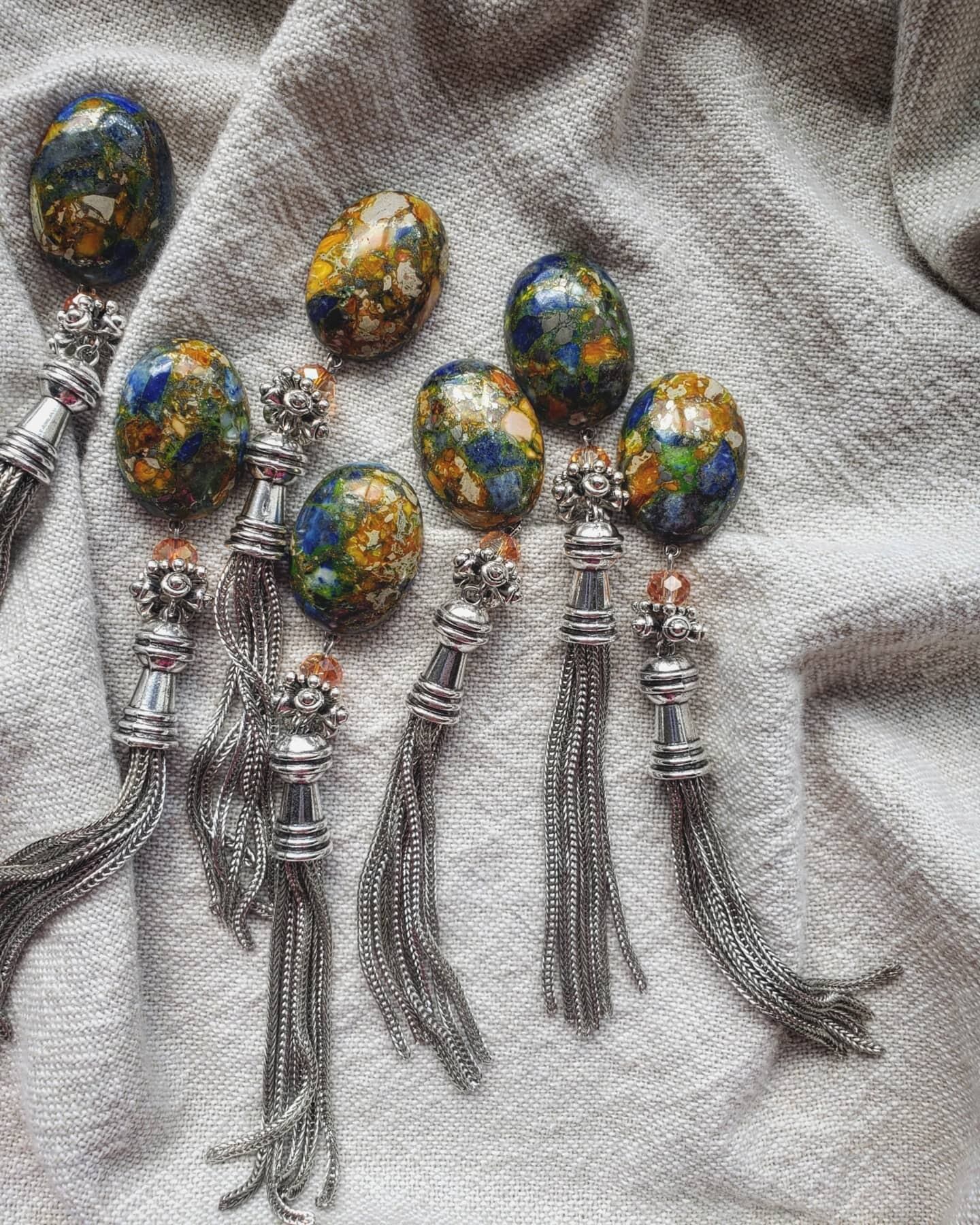 blue&yellow × orange glass × silver chain tassel 《再販なし》