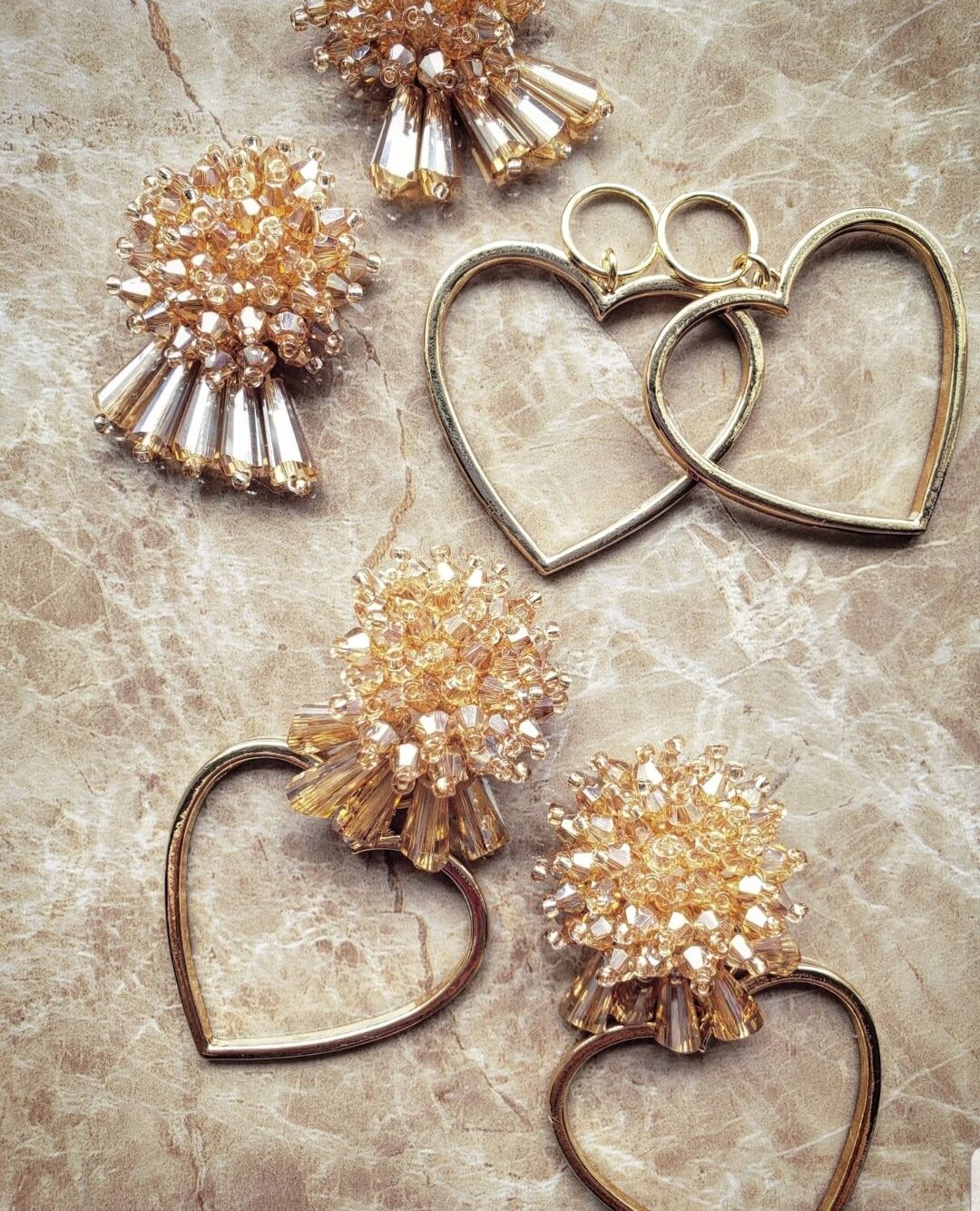 煌めくベージュビーズで施されたフェミニンなパーツ✨♥️