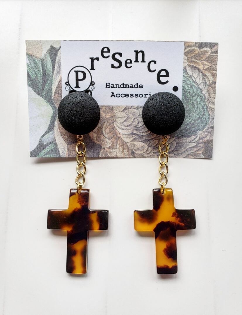 black × gold chain × fake tortoise cross 《再販なし》