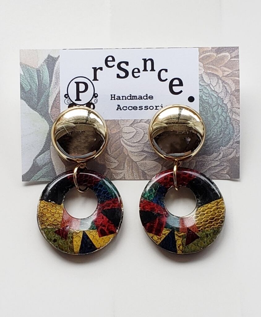 カラフルなパイソンを主役に、艶々ライトゴールドのヴィンテージパーツを合わせたシンプルデザイン✨