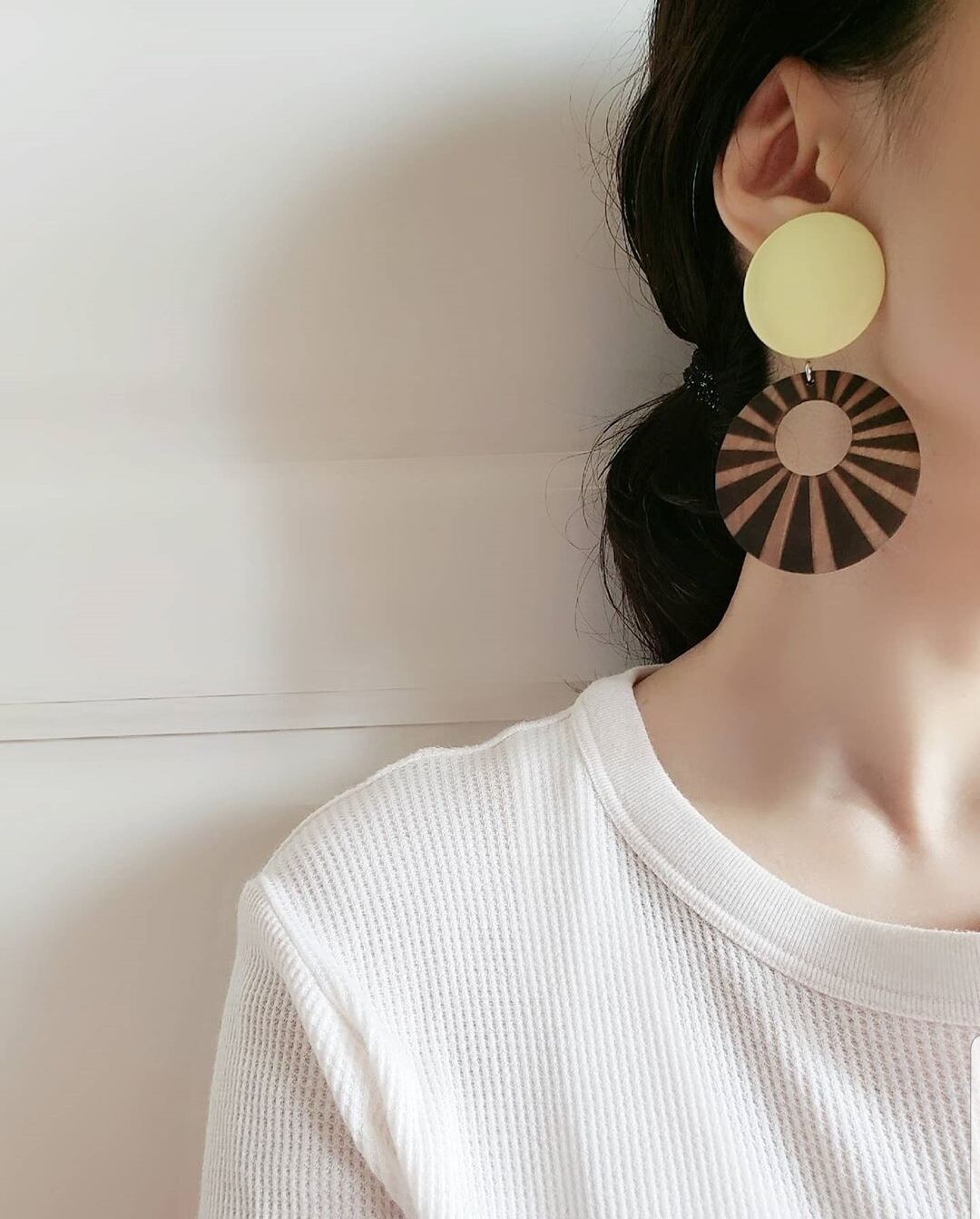 BIGなクリームイエローパーツに、stripeラインが施されたwoodリング✨