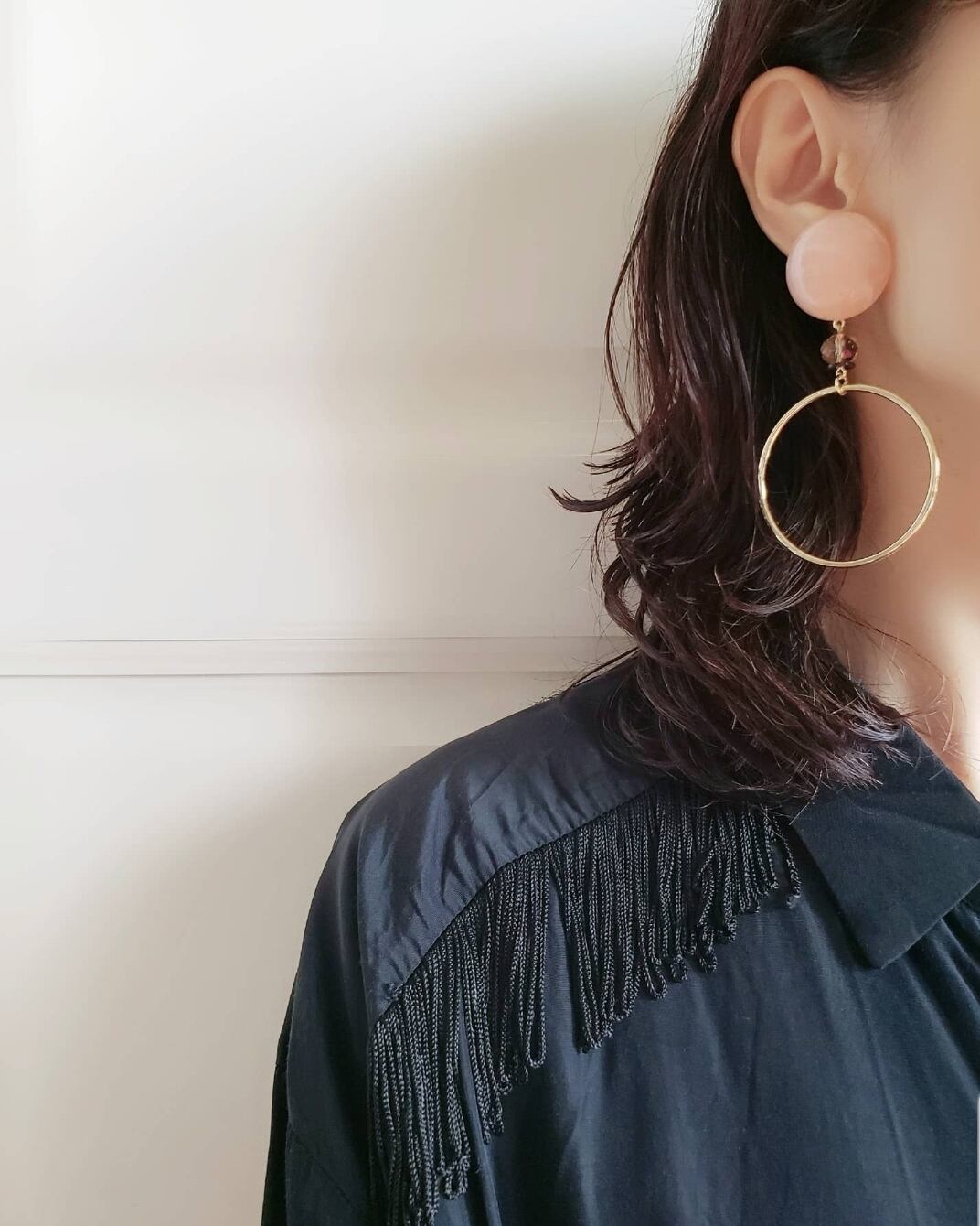 うっすら色づいたブラウンのglassビーズと、質が良く、華奢なラインが素敵なゴールドリングで、大人な雰囲気に✨