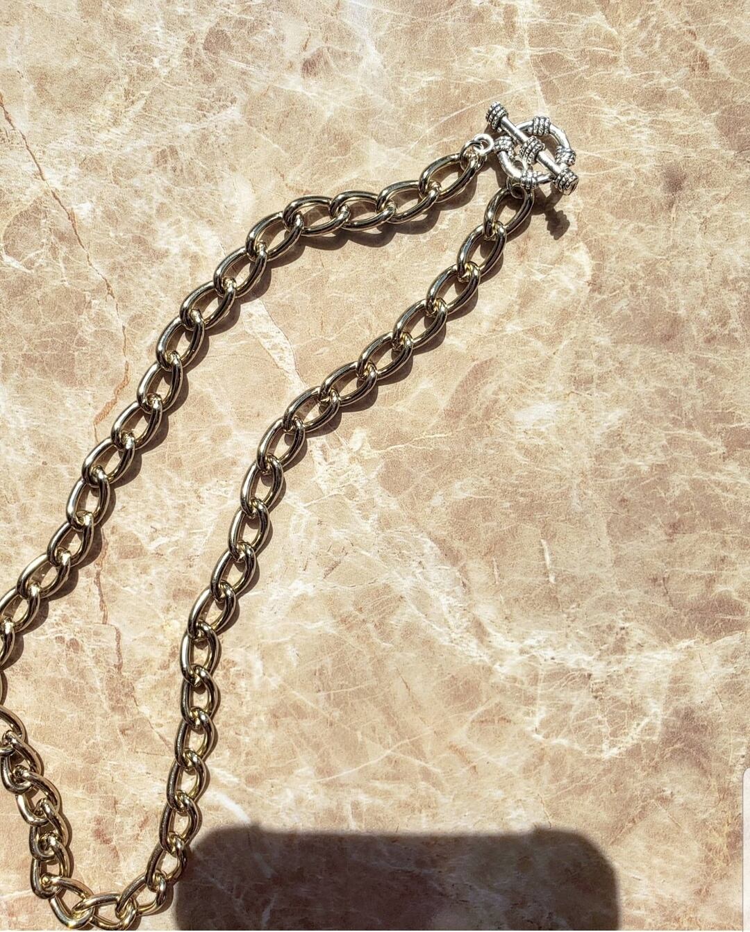 シルバーとゴールドの中間のような絶妙なCOLORのチェーンと、金具はシルバーのMIXデザイン✨