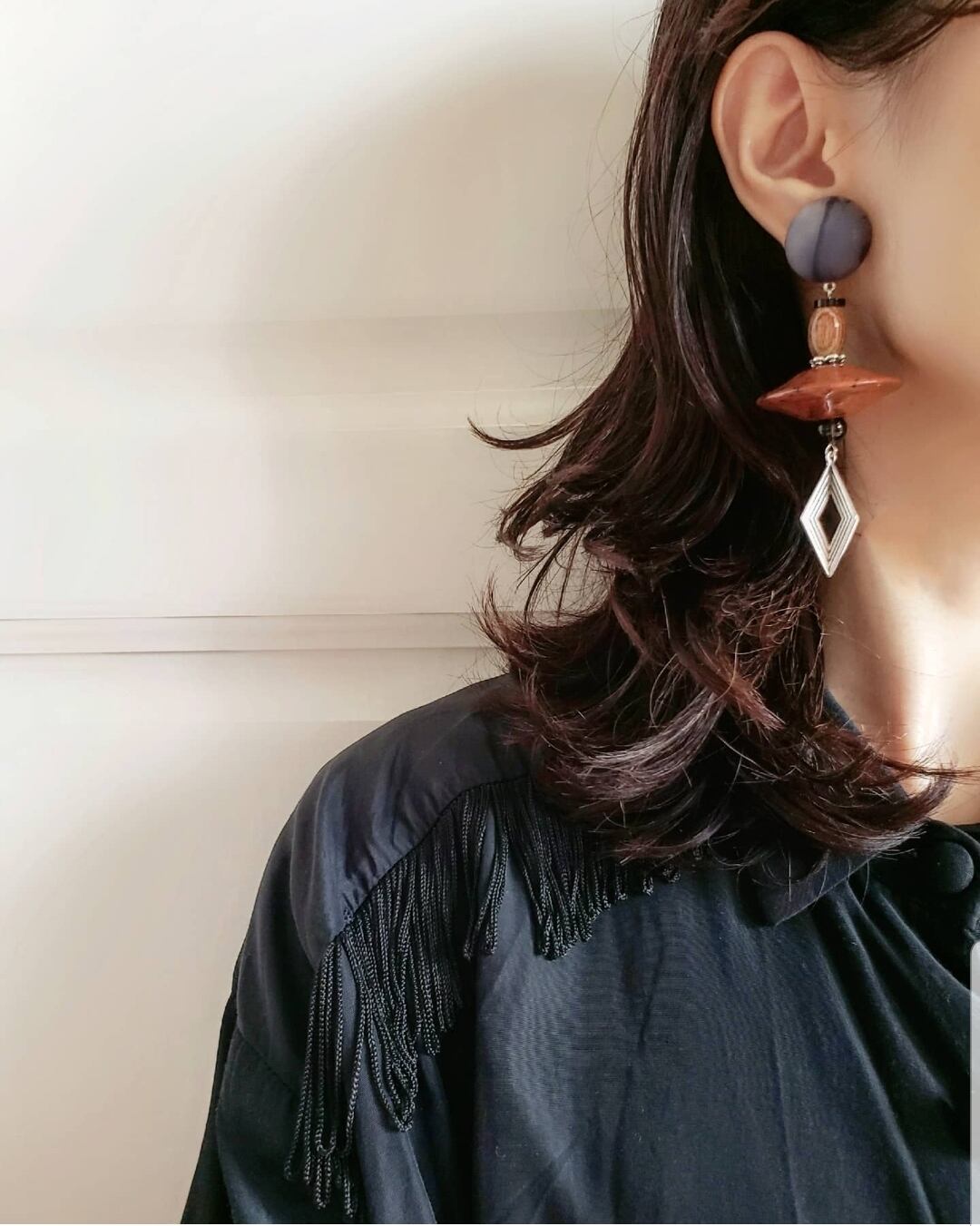 woodビーズと、ありそうでない、アンティークシルバーアールデコスタイルオープンダイヤモンドパーツを合わせてカジュアル感を✨