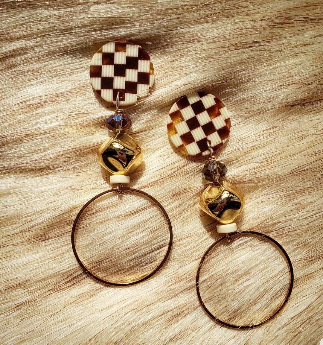 ブラウン&ベージュの市松模様がレトロでモダンな小ぶりパーツ✨