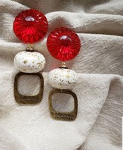 異なる雰囲気の、ホワイトに無造作なゴールドペイントが素敵な、大ぶりヴィンテージビーズを合わせて、
