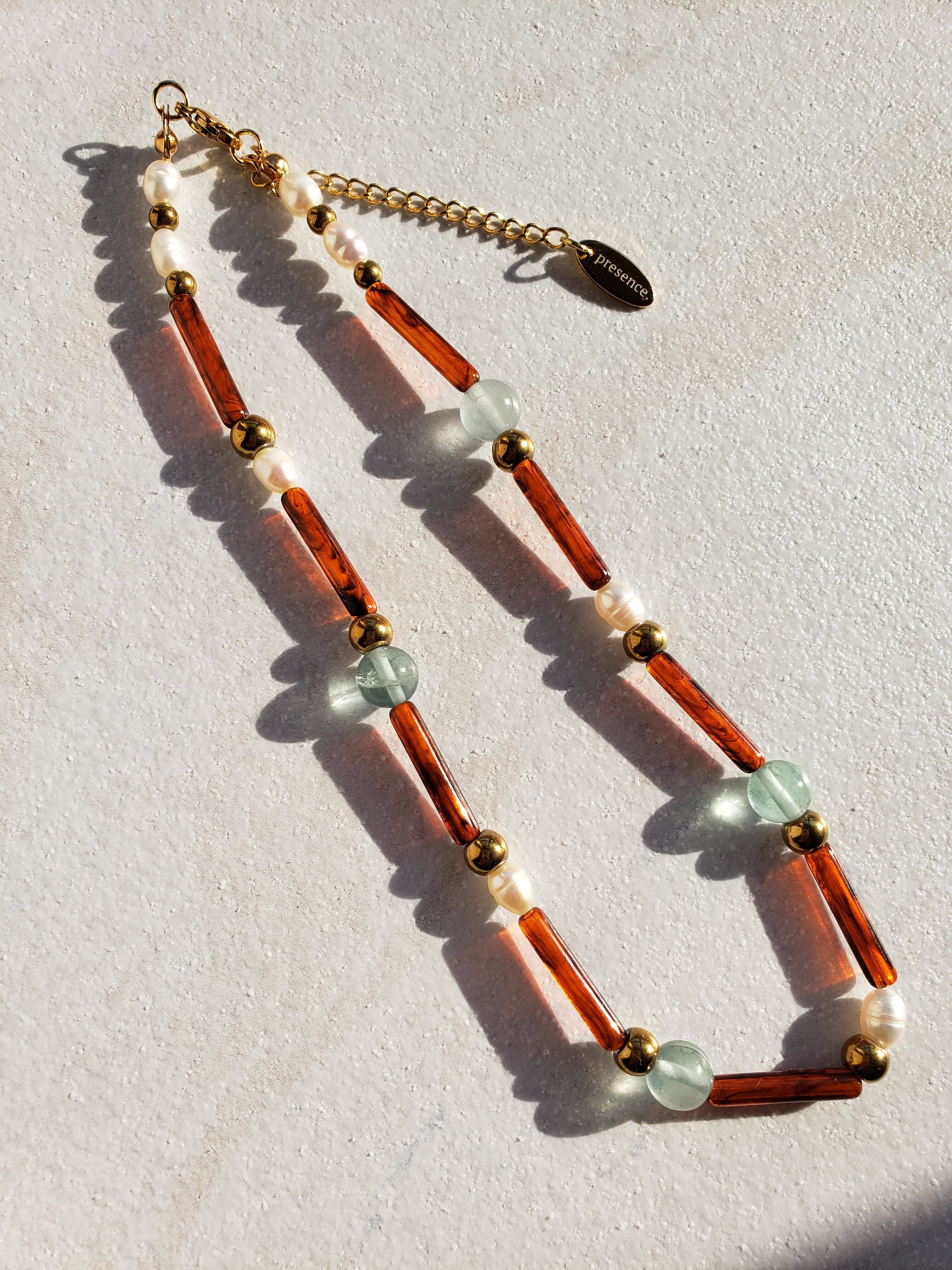 こちらは、ありそうでなかなかない!べっ甲調が素敵なブラウンのGermanヴィンテージパイプビーズを主役にした、スリムデザインシリーズ✨