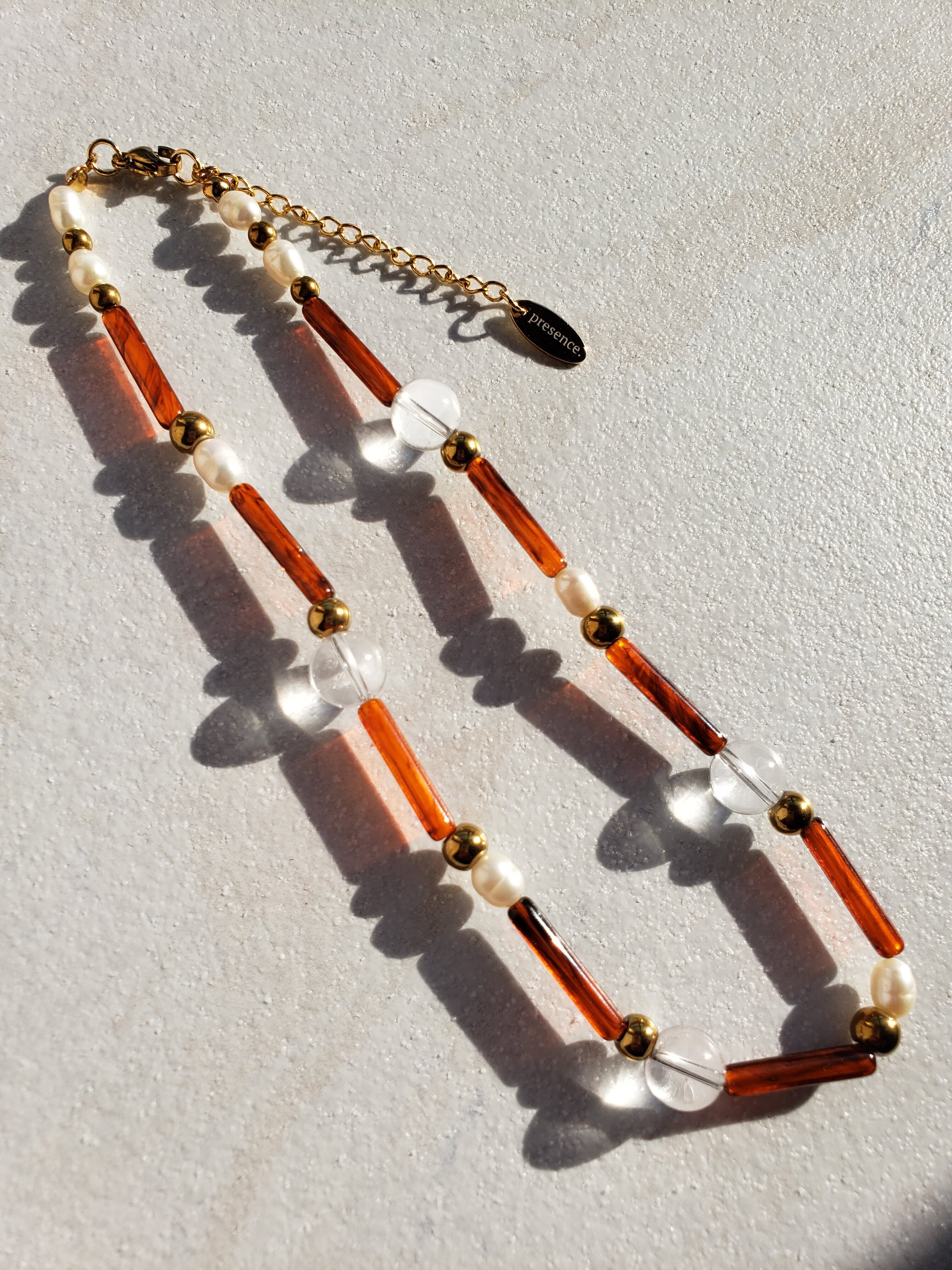 こちらは、ありそうでなかなかない!べっ甲調が素敵なブラウンのGermanヴィンテージパイプビーズを主役にした、スリムデザインシリーズ✨