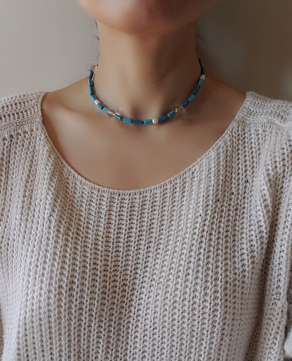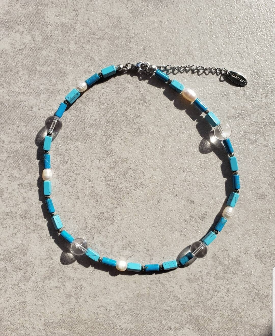 その中でもこちらは、濃淡ある2色のターコイズと、スリムなフォルムの中に、存在感あるクリスタルで凹凸で個性もつけた遊びのあるデザイン✨