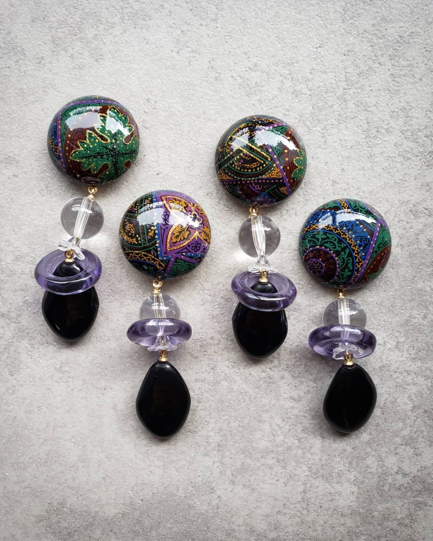 パープル、グリーン、ブルー、ゴールドなどで描かれたオリエンタルなパーツ✨