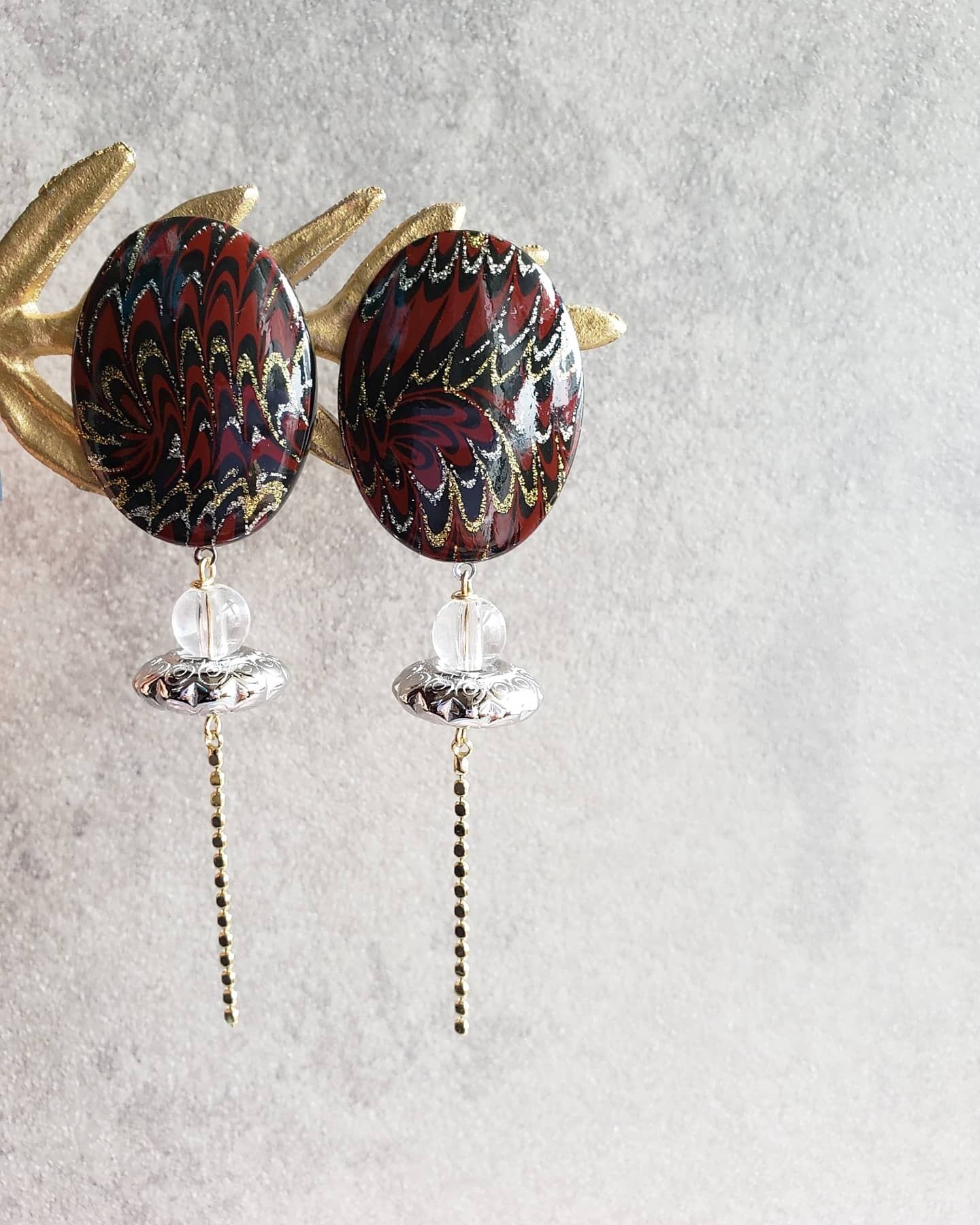 ダークレッドに、マーブル調に描かれた和風テイストが素敵なパーツ✨