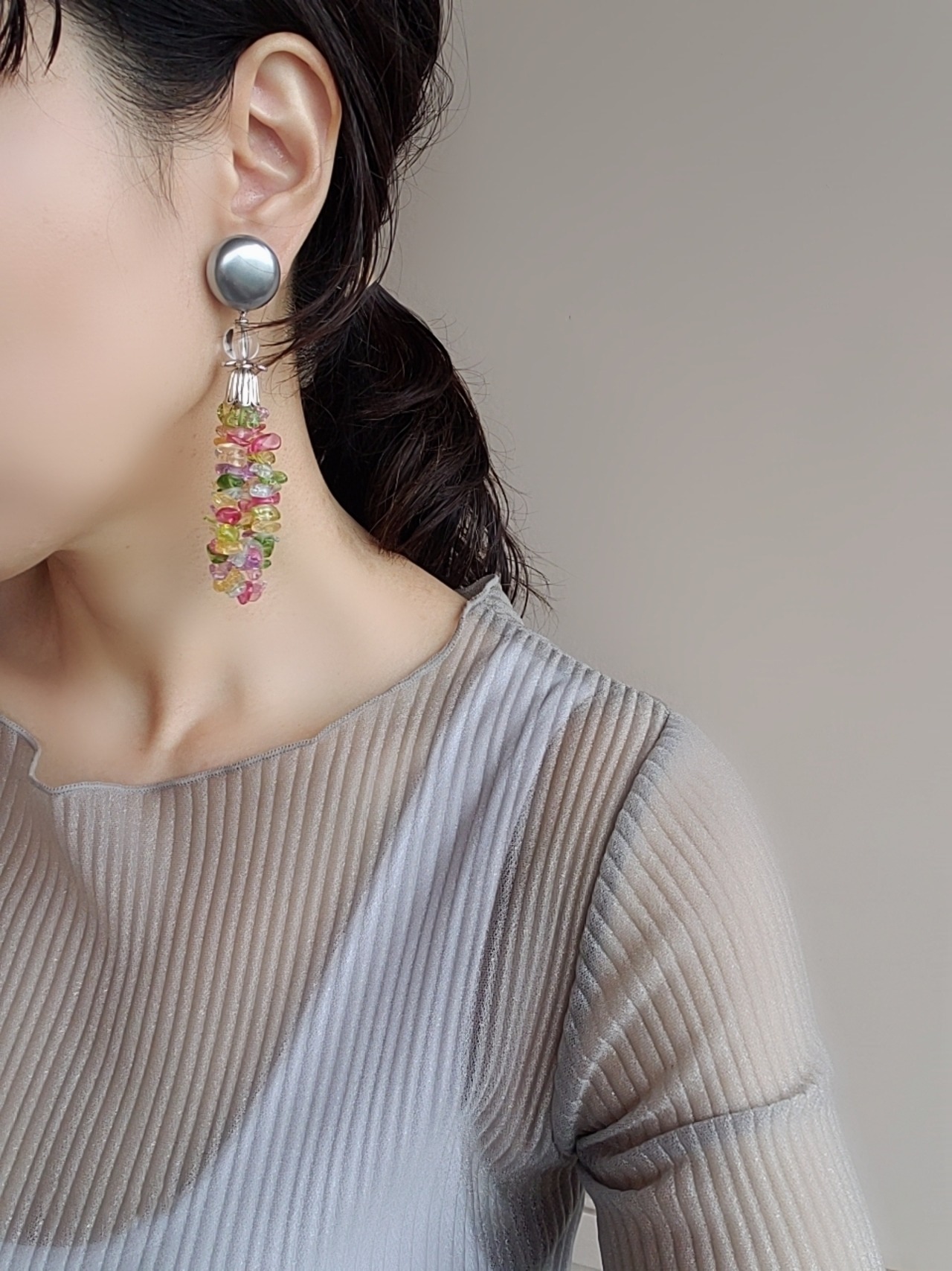 こちらは、染色されたクラッククリスタルのタッセルを主役に✨