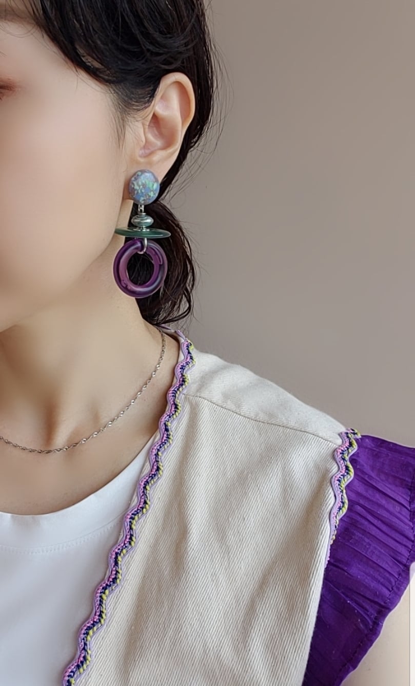 シアー感が素敵な落ち着きのあるグリーンと、パープルのヴィンテージパーツ達を合わせて✨♪