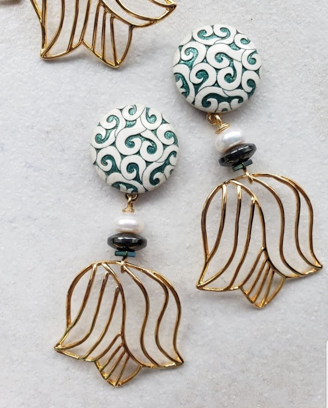 arabesque pattern(gold ・white・ blue) × pearl × hematite × gold tulip 《再販なし》