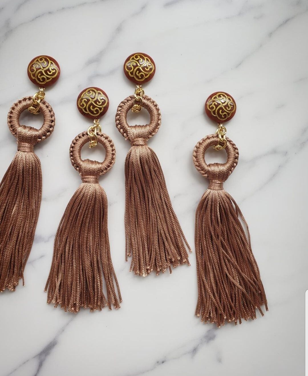 こちらは、オリエンタル柄のブラウンレッドパーツと、ダスティピンクタッセルを合わせた、1トーンカラーデザイン✨♪