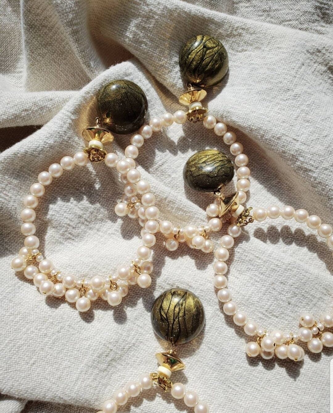 pearly khaki × gold × pearl big ring(cream) 《再販なし》