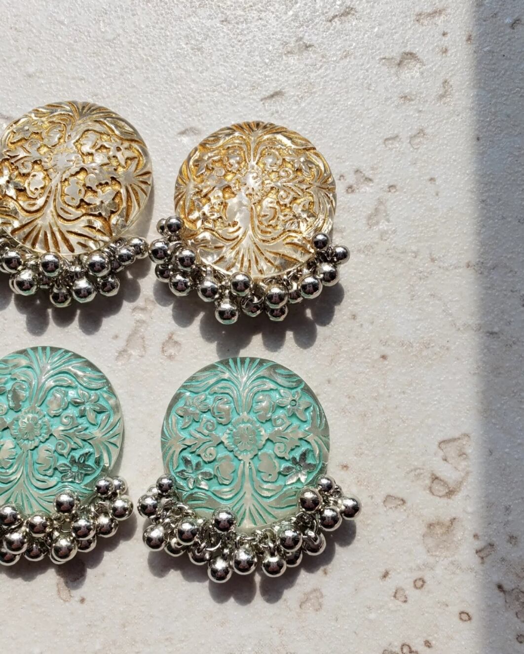 こちらは、耳元に1パーツ的なつぶつぶデザインを作りたくて、アンティーク柄が素敵なクリアパーツを主役に✨♪