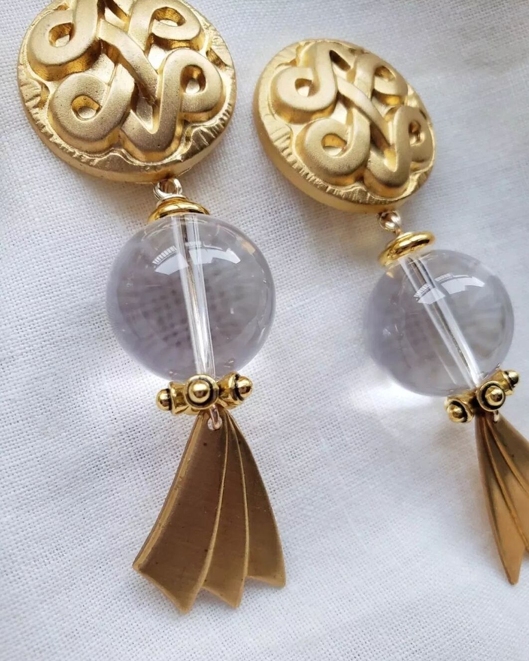 こちらは、レトロなマットgoldヴィンテージパーツと真鍮パーツを合わせたデザイン✨♪