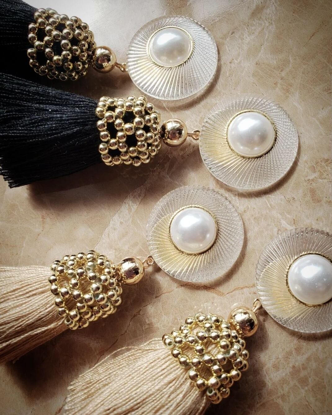 clear on pearl × gold × tassel(black、beige) 《再販なし》