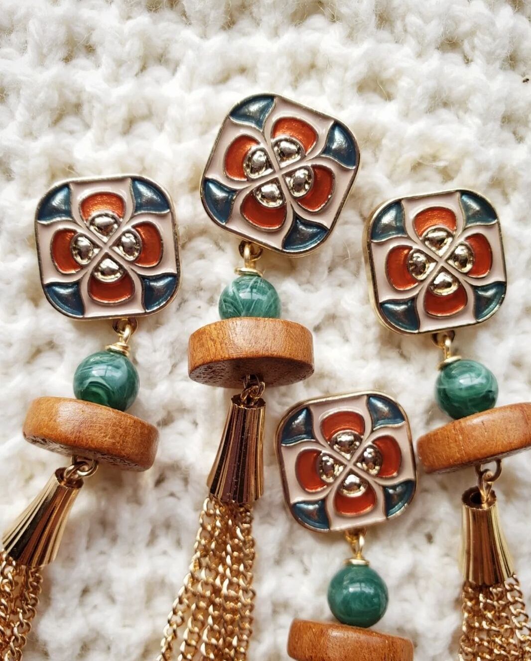gold square(orange flower) × brown wood × gold chain tassel 《再販なし》