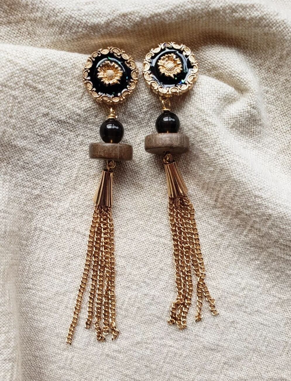 キラキラしすぎたくなかったので、グレイッシユなwoodパーツを合わせて、個性とカジュアルさをプラス✨