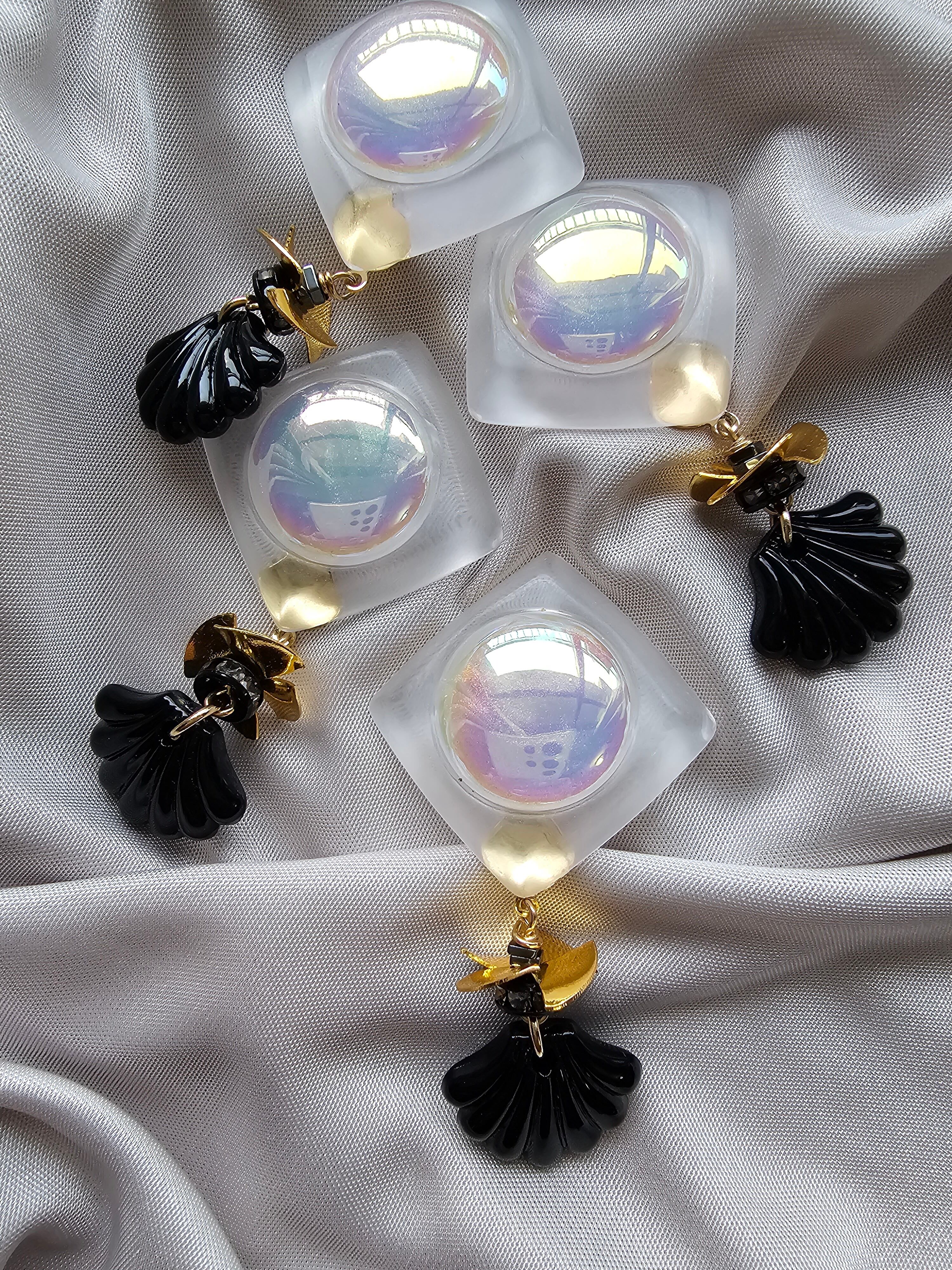 こちらは、個性あるシアーなオーロラsquareパーツをトップにしたデザイン✨️